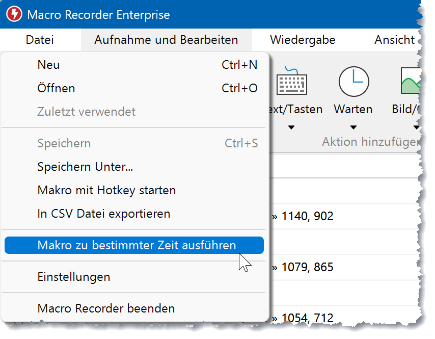 Macro Recorder nutzt den Microsoft Windows integrierten "Aufgabenplaner", um Makros zu bestimmten Zeiten und an bestimmten Tagen automatisch zu starten.