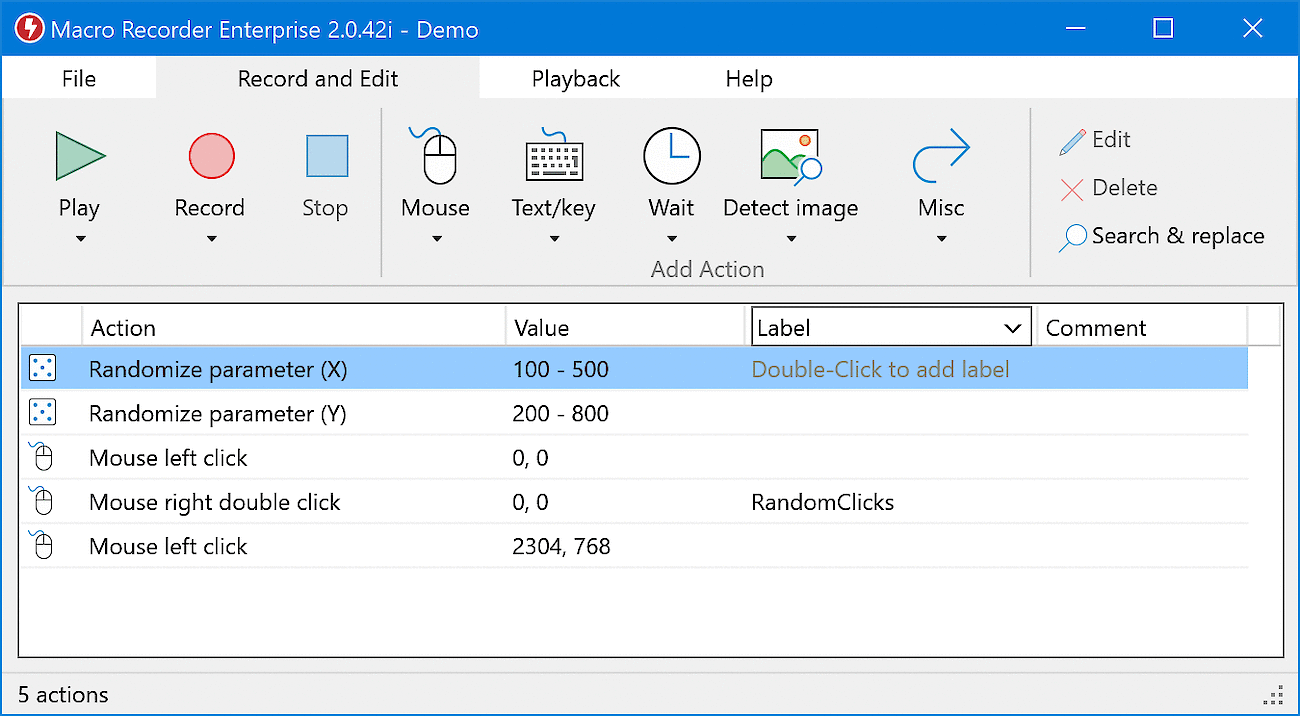 Veraltet: Macro Recorder kann Parameter anderer Aktionen mit jedem Durchlauf mittels einer Goto- oder Repeat-Aktion inkrementieren/dekrementieren, Zufallswerte ausgeben oder eine Liste von Parametern aus einer Datei verwenden, um damit statische Parameter Ihrer Aktionen zu ersetzen.