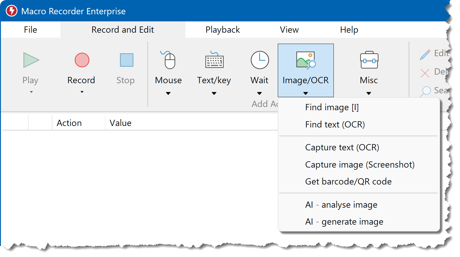 Macro Recorder can capture and extract image, text with on-screen text recognition (OCR), bar code and QR code information from a specified region of your screen.