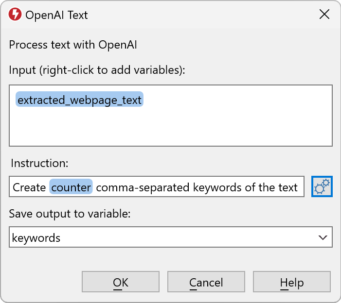Macro Recorder can capture any text from the clipboard, a webpage, a file, or read it from the screen using on-screen text recognition and process it with AI.