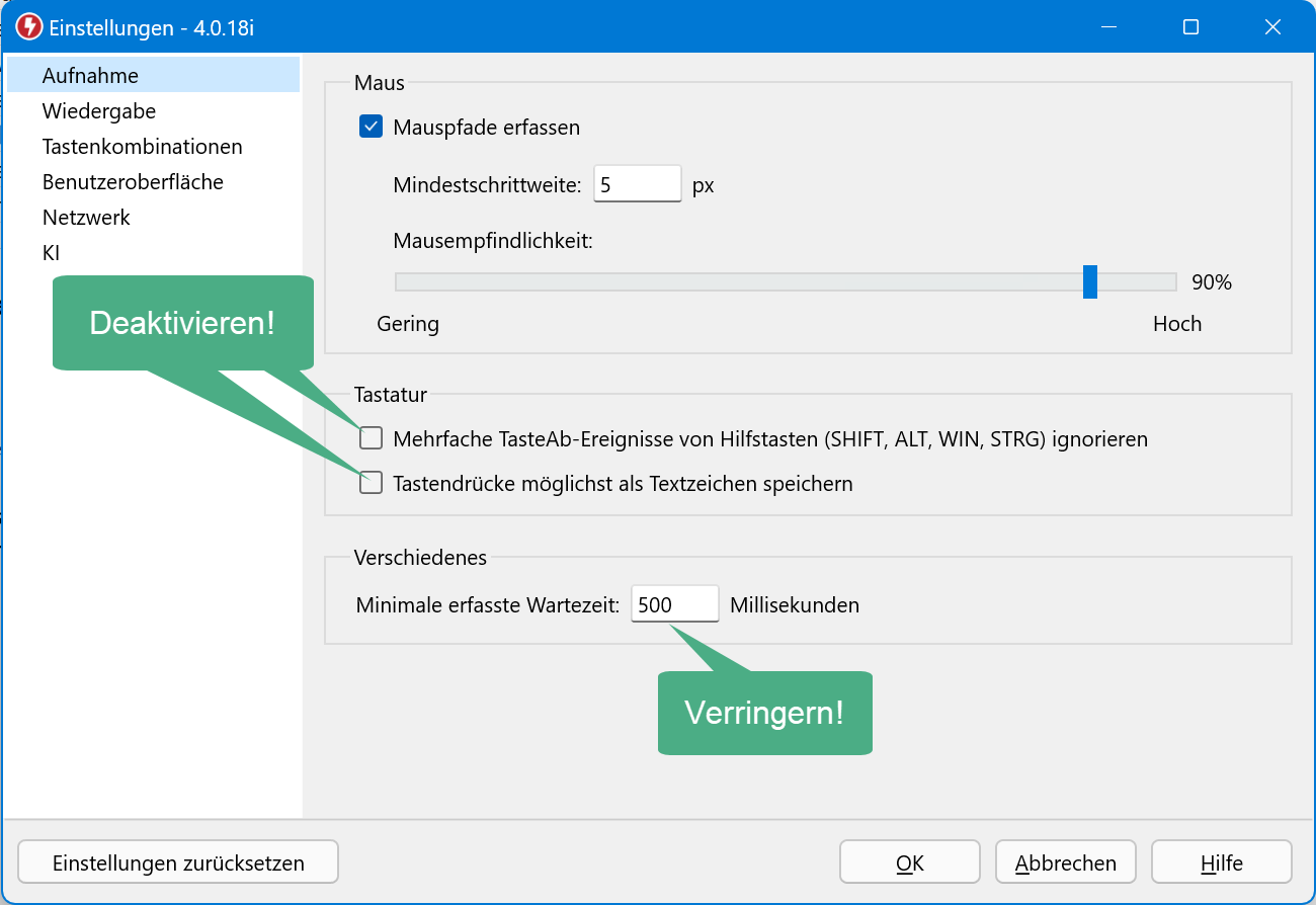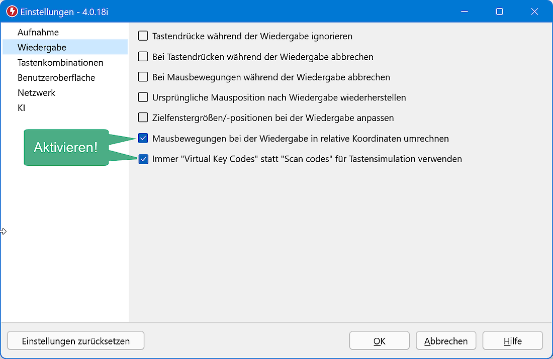 - Spielen Sie das Makro mit der identischen Bildschirmgröße und -auflösung ab, wie bei der Aufnahme.