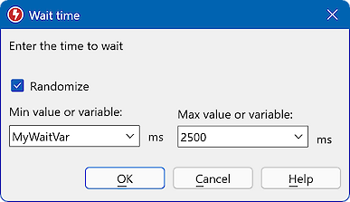 When the "" option is activated, the waiting time varies randomly between the specified minimum and maximum values.