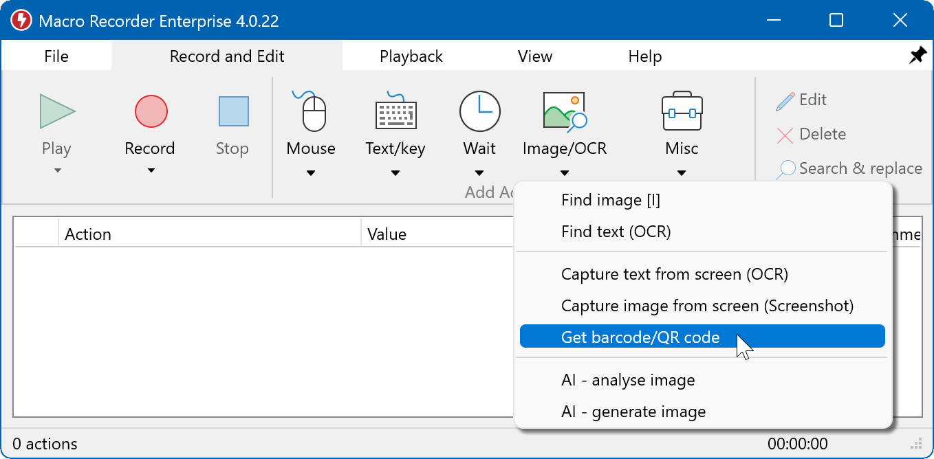 Macro Recorder can capture and extract image, text with on-screen text recognition (OCR), bar code and QR code information from a specified region of your screen.
