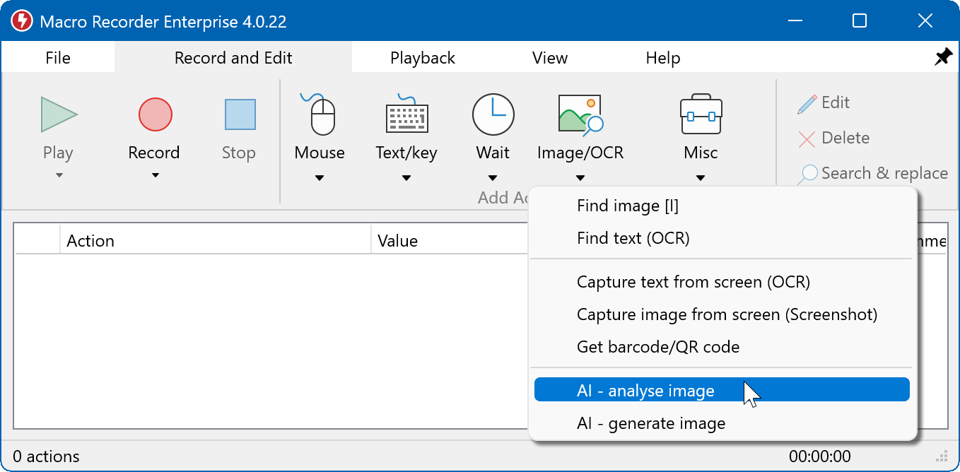 Macro Recorder itself does not perform any AI processing itself but integrates 3rd party AI engines into the user interface. The AI engine(s) must be set up in Macro Recorder which is a one-time procedure.