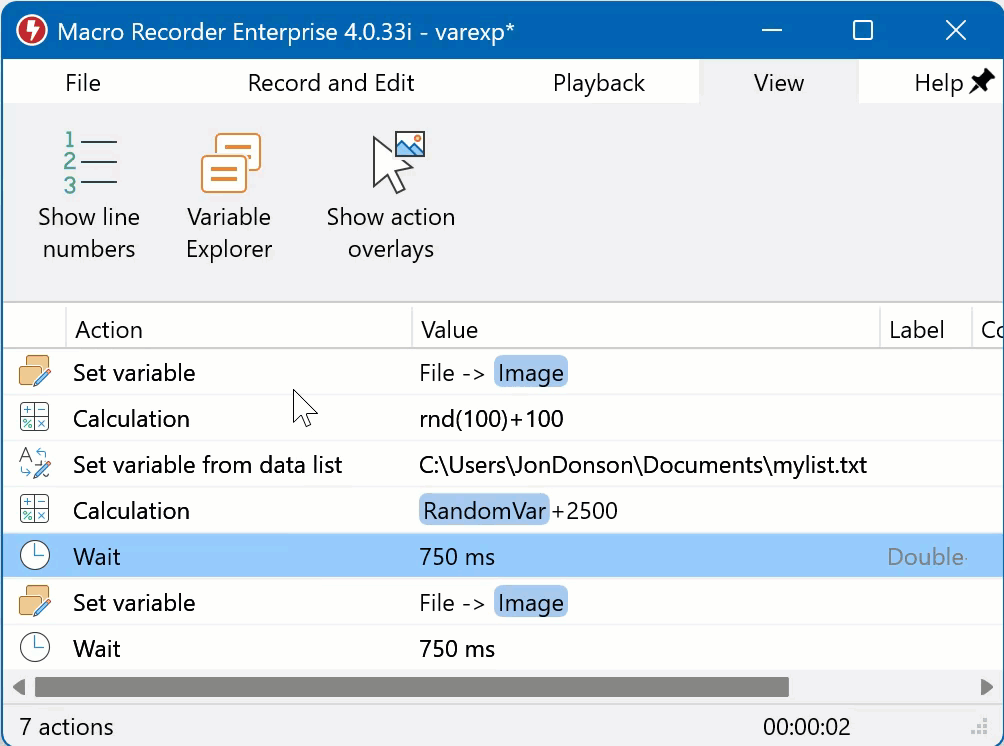 The Variable Explorer lists all variables and their text/image contents that are created/updated during playback of a macro script for debugging purposes: