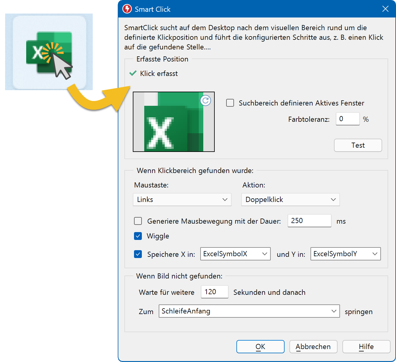 Anstelle statischer X/Y-Koordinaten erfasst Macro Recorder die visuelle Umgebung einer Klickposition.